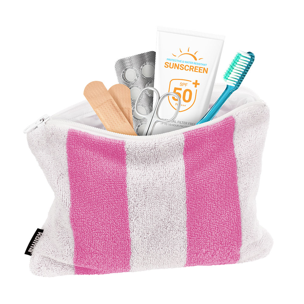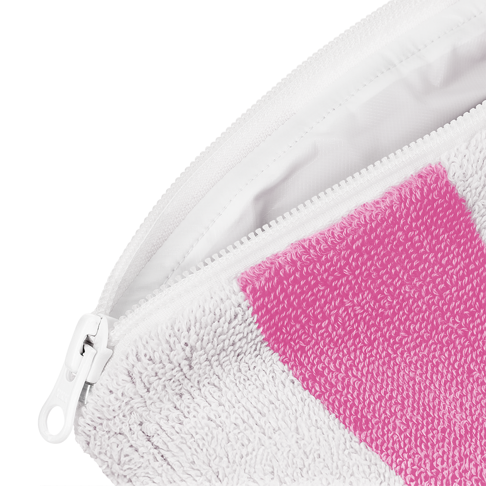 Ob auf Reisen, im Alltag oder beim nächsten Spa- oder Badi-Besuch – dieses Necessaire ist der ideale Begleiter wenn’s stilvoll und praktisch zugleich sein soll. Aussen kuschelig-weich aus 100 % Baumwoll-Frottee, innen mit einer cleveren plastifizierten Beschichtung, damit nichts ausläuft – oder eben nichts hineinkommt. Egal ob Pflegeprodukte oder Wertsachen wie Handy und Schlüssel: Alles ist sicher verstaut, geschützt vor Feuchtigkeit, Sand und kleinen Malheuren. Verschlossen mit dem Reissverschluss bleibt alles ordentlich verstaut und griffbereit.