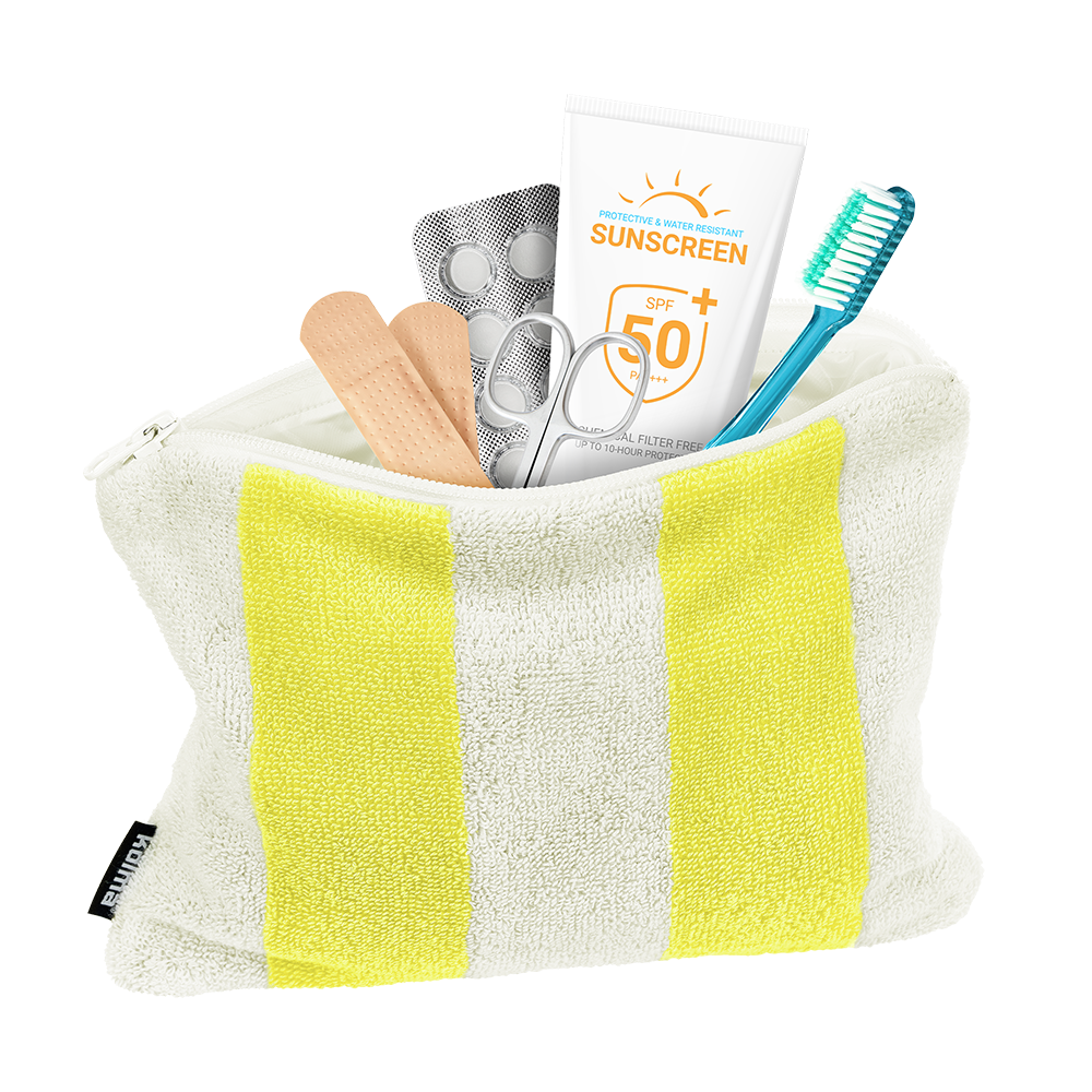 Ob auf Reisen, im Alltag oder beim nächsten Spa- oder Badi-Besuch – dieses Necessaire ist der ideale Begleiter wenn’s stilvoll und praktisch zugleich sein soll. Aussen kuschelig-weich aus 100 % Baumwoll-Frottee, innen mit einer cleveren plastifizierten Beschichtung, damit nichts ausläuft – oder eben nichts hineinkommt. Egal ob Pflegeprodukte oder Wertsachen wie Handy und Schlüssel: Alles ist sicher verstaut, geschützt vor Feuchtigkeit, Sand und kleinen Malheuren. Verschlossen mit dem Reissverschluss bleibt alles ordentlich verstaut und griffbereit.
