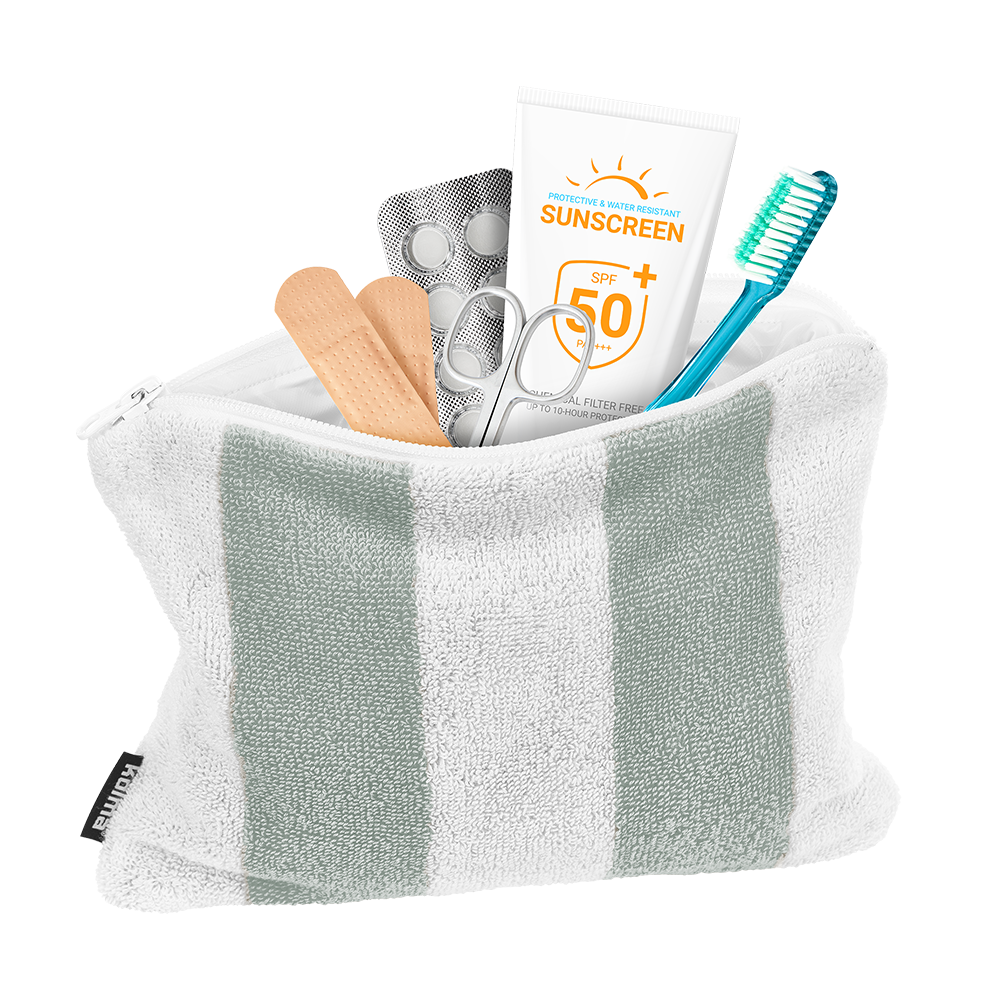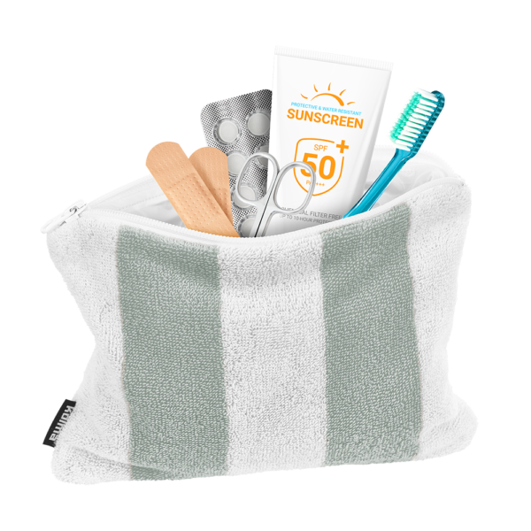 Ob auf Reisen, im Alltag oder beim nächsten Spa- oder Badi-Besuch – dieses Necessaire ist der ideale Begleiter wenn’s stilvoll und praktisch zugleich sein soll. Aussen kuschelig-weich aus 100 % Baumwoll-Frottee, innen mit einer cleveren plastifizierten Beschichtung, damit nichts ausläuft – oder eben nichts hineinkommt. Egal ob Pflegeprodukte oder Wertsachen wie Handy und Schlüssel: Alles ist sicher verstaut, geschützt vor Feuchtigkeit, Sand und kleinen Malheuren. Verschlossen mit dem Reissverschluss bleibt alles ordentlich verstaut und griffbereit.